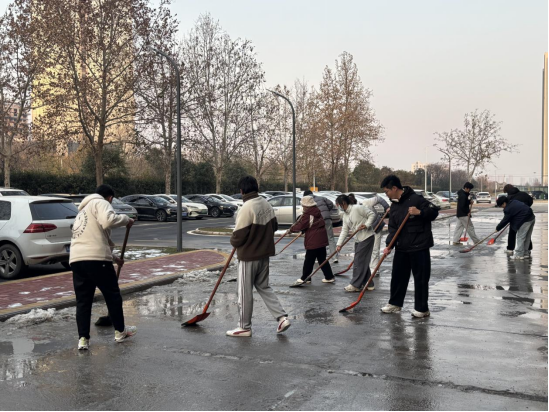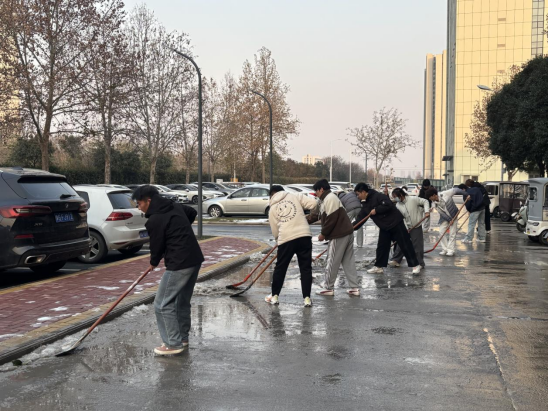 道路结冰,积压难融。3D打印学院党委充分发挥基层党组织战斗堡垒作用,以实际行动想师生之所想,急师生之所急,积极联络后勤管理部门,协调专业工具,并动员组织志愿者,大家一呼百应。活动中,学院教师党员与学生党员干部一同行动,拿起铁锹、扫帚,奔赴学院教学楼周边主干道积雪深厚、湿滑难行的重点区域。尽管寒风凛冽,气温较低,但大家热情高涨,干劲十足。教师们以身作则,挥锹破冰;学生们齐心协力,清扫转运。大家分工明确,配合默契,铲雪、除冰、清扫、清运,各个环节井然有序,用实际行动为校园开辟出一条条“暖心通道”和“安全之路”。