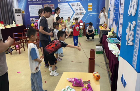 活动伊始,3D打印学院党委书记田文强利用数据中心裸眼3D显示屏带领孩子们做游戏、看视频,孩子们的童真童趣,欢声笑语充满学院。随后在教师、家长的陪同下孩子们参与了“爆破音吹蜡烛”、“投壶”、“踩爆气球”等形式多样、妙趣横生的游戏,他们或投入认真,或欢声笑语,享受着游戏的乐趣和节日的快乐。