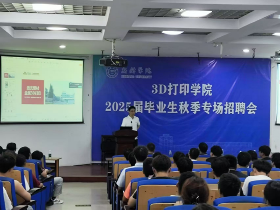 下午16:30,点,3D打印学院组织家长们来到A05报告厅,走进“3D打印学院2025届毕业生秋季专场招聘会”的现场进行观摩。家长们分别听取了广东恒锐科技集团有限公司、明丹医疗科技有限公司、芜湖古戈尔自动化科技有限公司、苏州博理新材料科技有限公司、河南省矿山起重机有限公司和驼人集团共六家用人单位的招聘宣讲报告,参观了这些企业的招聘宣传材料,深刻体验到了3D打印行业日趋旺盛的用人需求和欣欣向荣的发展现状。