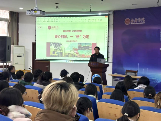 12月11日下午,3D打印学院于A05报告厅开展“暖心相伴,一‘研’为定”考研助力活动。3D打印学院党委书记田文强、副院长张涛及毕业班辅导员们共同出席活动,与百余名考研同学们面对面交流,为莘莘学子加油鼓劲并送上热情祝福。活动由学院党委副书记刘传虎主持,