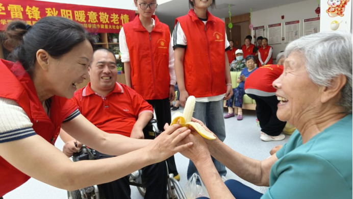 当天上午,两支队伍的20余名志愿者在开封好人、活动负责人王六勇的带领下,满怀热忱走进鼓楼区新华街道综合养老服务中心。活动伊始,365学雷锋志愿服务队副队长乔利波精心购置的苹果、香蕉、葡萄等新鲜水果被逐一送到老人手中,志愿者们一句句“奶奶,尝尝苹果”“爷爷,吃根香蕉”的亲切问候,瞬间让养老服务中心充满暖意,老人们的感谢声此起彼伏。