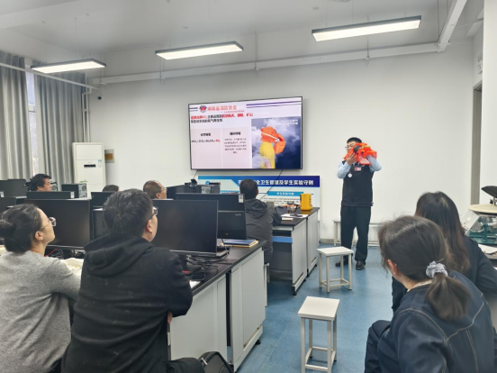 本次活动分为培训和消防演练两个环节进行,学院领导提前和河南省消防协会积极沟通,邀请省消防协会张川教官前来主讲和指导。在培训环节,张川教官分作两场,分别对教师和学生开展专题讲座。张教官结合高校实验室、宿舍、办公室、居民楼等场所的火灾特点,通过近年来发生的真实火灾案例,以触目惊心的画面和深入浅出的剖析了火灾发生的原因和教训。重点围绕如何排查消除火灾隐患、如何正确报火警、如何扑救初起火灾、如何在高浓度烟热环境下正确逃生自救等内容进行了详细阐述。并现场示范指导灭火器、灭火毯、化学氧逃生面罩等消防器具的使用方法以及初起火灾的扑救技巧。